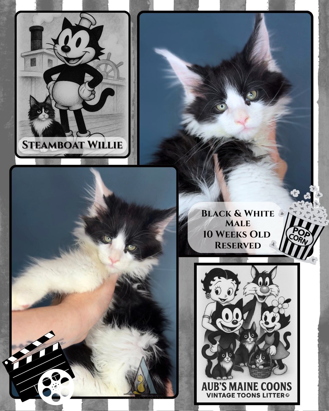 - Personality: Steamboat Willie is a sweet kitten. He loves his momma and does well with being touched and held. He is not scared of sudden noises. He adapts to new situations well. He will be a great option for someone with kids or other pets with a slow introduction.